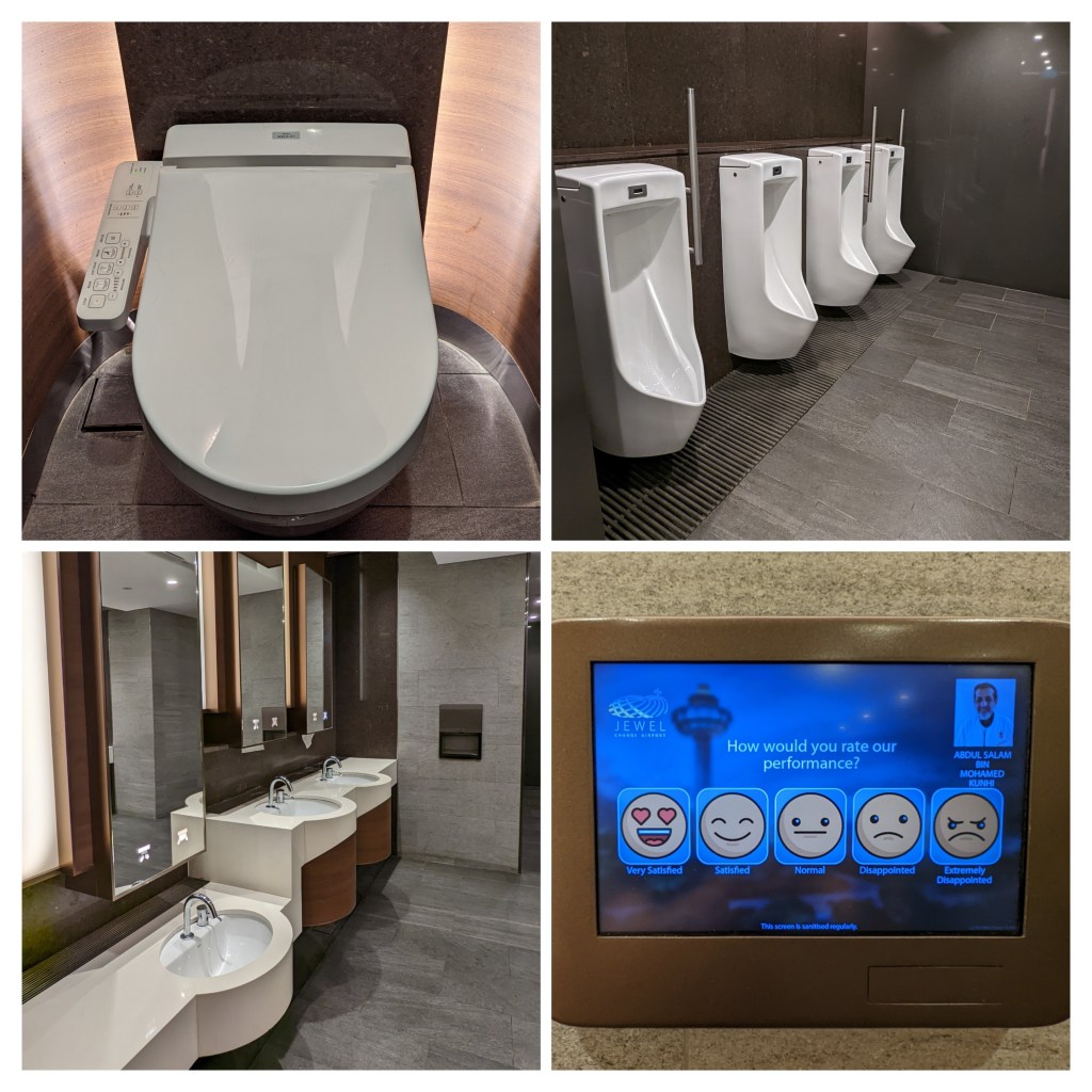 17:30 Uhr – Toiletten: Zeit mal etwas über die Toiletten in Singapur zu erzählen. Sie sind alle kostenfrei. Sie sind sauber (mit wenigen Ausnahmen). Sie sind für alle Personengruppen (von Klein bis Groß, von Jung bis Alt) Sie haben meistens ein Feedbacksystem. Und im Changi Airport haben sie sogar eine Unterbodenreinigung 😁.