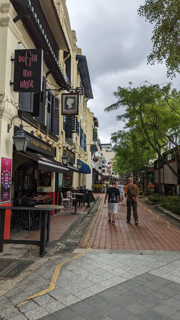 16:00 Uhr – Clarke Quay: Wir sind bei den alten Warenhäusern von Singapur. Hier wurden die Waren gelöscht und eingelagert, als der alte Hafen noch in der Stadt war. Heute befindet sich hier eine Partymeile. Allerdings haben ungefähr 7 von 10 Geschäften Covid nicht überlebt und sind aktuell geschlossen. Das wird wohl noch ein paar Monate dauern, bis hier wieder der Bär steppt