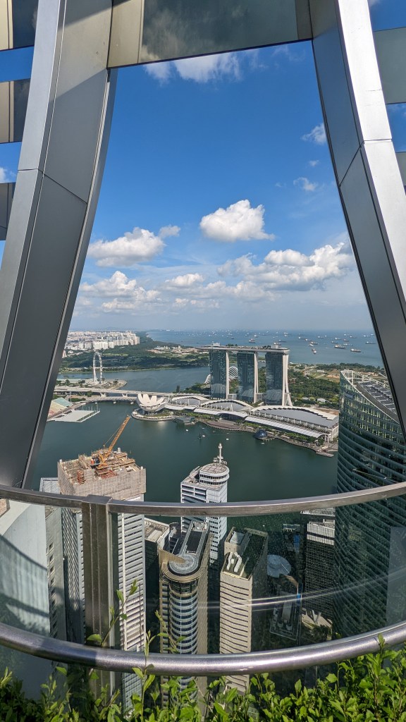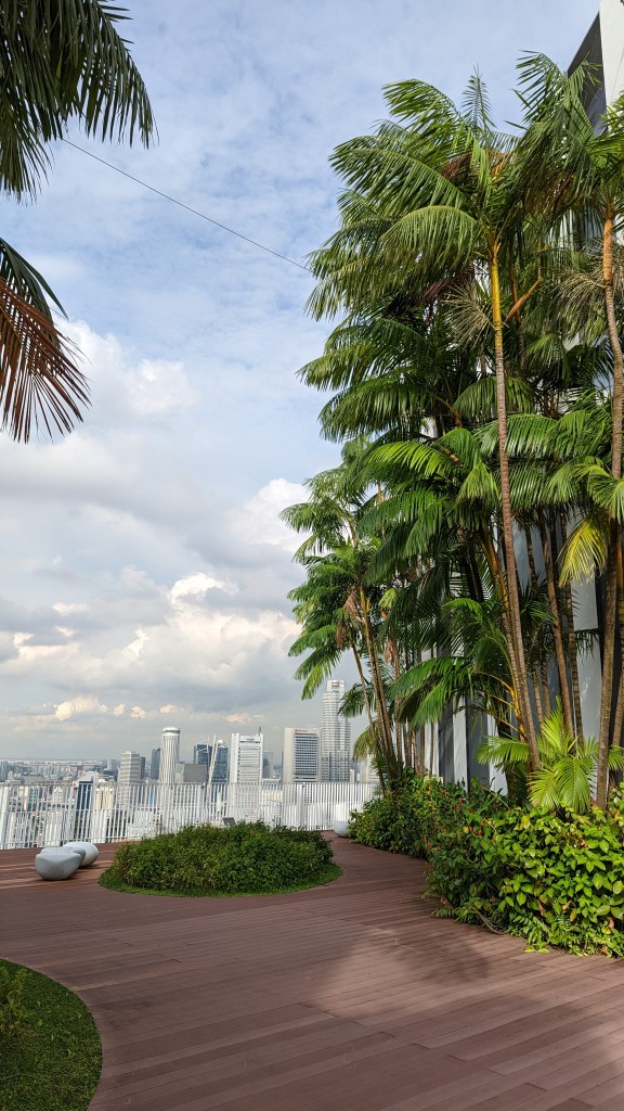 Oben geht es dann noch durch ein Drehkreuz, welches man mit der Karte öffnet. Die Plattform zieht sich über 7 Gebäude. Und man hat von dieser den besten Blick auf Singapur, zumindest was ich bisher gesehen habe. 😱