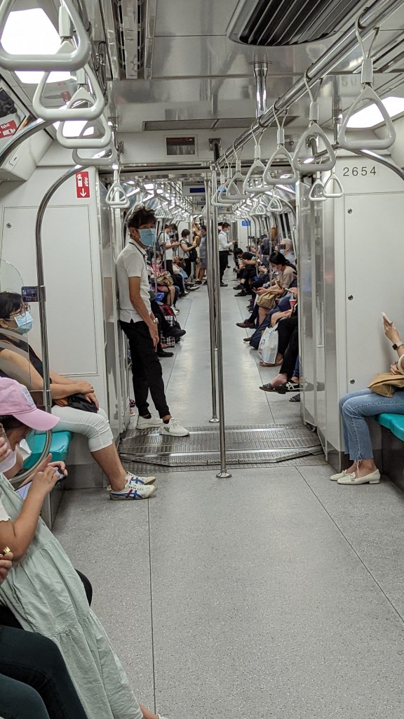 11:00 Uhr – U-Bahn fahren: Jetzt starten wir. Wir müssen jetzt erst einmal zwei Stationen fahren. U-Bahn fahren in Singapur ist richtig einfach. Man hat eine Karte mit Guthaben. Mit dieser checkt man ein und aus. Take it easy, sage ich nur dazu.