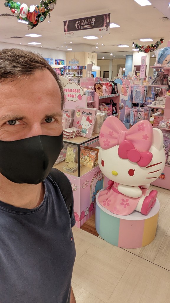 Lost… Wir haben gerade die Hälfte des Teams im Spielzeugladen verloren. Da kann ich mich auch mal fix mit Hello Kitty fotografieren.