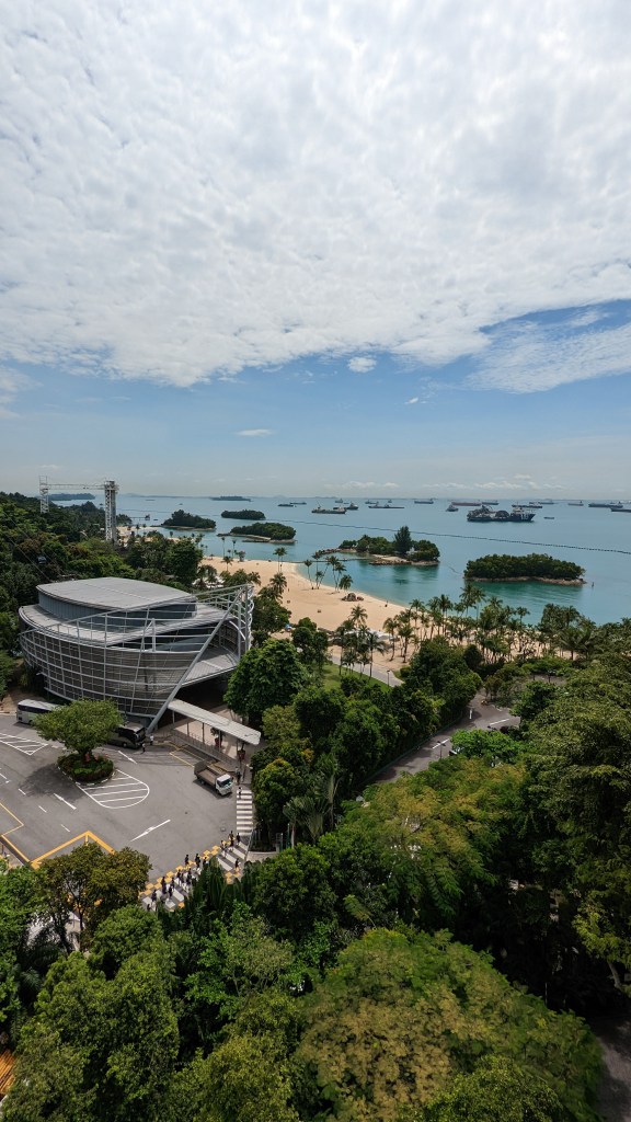 7:00 Uhr – Sentosa Express: Die erste Bahn des Sentosa Express haben wir abfahren lassen. Die war uns dann doch zu voll. Aktuell kann man mit dieser kostenfrei fahren. Vor 2 Jahren durfte ich noch bezahlen. Die Schranken stehen aber noch. Und man muss auch noch einchecken. Also gehe ich mal davon aus, dass dies nicht immer so bleiben wird