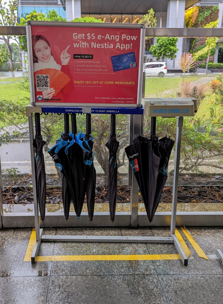 10:00 Uhr – Schirm-Verleih: Es regnet gerade. Nicht allzu heftig, aber so, dass ich heute umplanen musste. Auf dem Weg zur U-Bahn haben wir einen Ständer gesehen, an dem man sich Schirme ausleihen kann. Einfach nur TOP, nur über die Kosten kann ich noch nichts sagen.