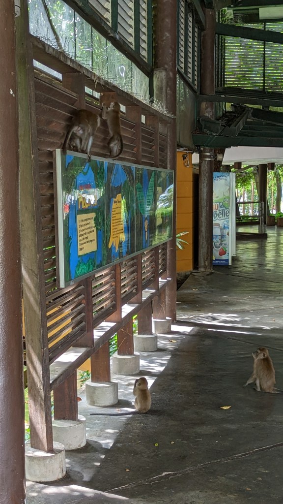 10:30 Uhr – Affen: Wir sind angekommen. Noch mal schnell für kleine Jungs, bevor es losgeht. Was ist das? Hier laufen tatsächlich Affen im Gastrobereich herum. Echt niedlich. Da braucht man nichts anderes. 🐒