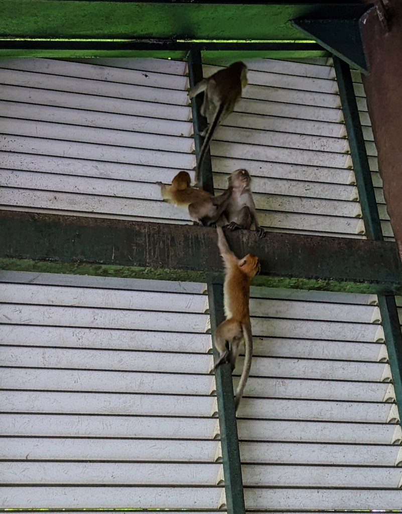 Mit Plastiktüten, in denen sich Essen befindet, sollte man hier nicht herumlaufen. Ich habe gerade beobachtet, wie ein Affe einen dieser Beutel aufriss und versuchte, an den Inhalt heranzukommen. Die Frau erschrak sehr, als sie von hinten attackiert wurde.