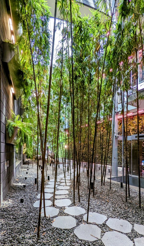 Wir sind ein paar Etagen heruntergefahren. Zwischen der 17. & 20. Etage gibt es einen Garten. Ich bin gerade komplett beeindruckt von dem, was man hier hingebaut hat.