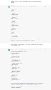 Anschließend wollte ich wissen, ob mir die KI auch eine Einkaufsliste erstellen kann. Beim ersten Versuch erhielt ich nur eine Liste, weswegen ich nochmal nachbessern musste. Danach bekam ich auch die Anzahl der Zutaten mitgeliefert. Sieht doch gut aus, oder?