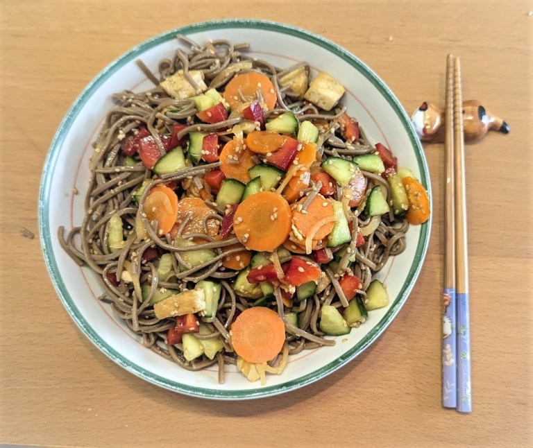 Das 1. Gericht, habe ich leicht modifiziert. Bei diesem habe ich die Möhren leicht angebraten, statt diese roh beizumengen. Dies wäre mir ansonsten zu viel knackiges Gemüse gewesen, da das Gericht bereits rohe Paprika und Gurke hatte.