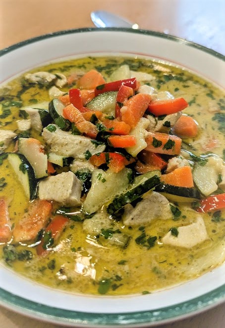 Auch das 2. Gericht modifizierte ich leicht. Ich entschied mich erneut, das Gemüse komplett anzubraten. Dies aber eher aus persönlichem Geschmack und nicht, weil es das Gericht unbedingt verbessern würde. Was ich jedoch bei diesem Gericht gelernt habe ist, die Curry-Paste sollte man sorgsam dosieren, damit das Gericht die Schärfe hat, die man möchte.