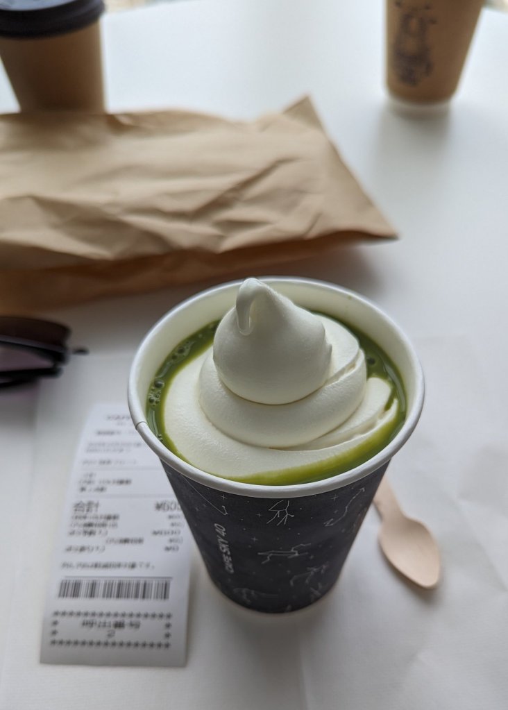 10:30 Uhr: Das Café im Umeda Sky Building hat endlich geöffnet. Ich habe schon gesehen, dass sie verschiedene Matcha Kreationen im Angebot haben. Eigentlich wollte ich ja ein Matcha Kaffee trinken, aber am Ende ist es dieses leckere Eis geworden.