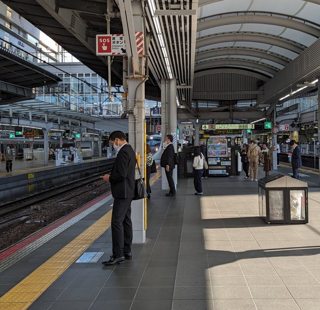 17:00 Uhr: Wir stehen am Bahnsteig und warten auf den Zug zum Flughafen. Eigentlich sollte einer schon vor 15 Minuten kommen. Doch der ist ausgefallen. Ich übersetze kurz mal den Hinweis bei Google Maps. „Kontakt mit Menschen mit der Bahn“, wahrscheinlich ein Selbstmord.