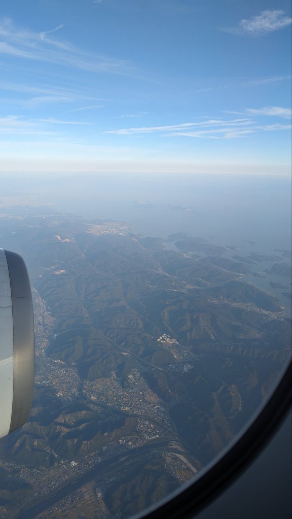 09:30 Uhr: Landeanflug auf Japan. Ich glaube wir sind gerade an Tokio vorbei geflogen. Ich dachte erst, dass wäre bereits Osaka, aber der Flieger flog geradeaus weiter. Jetzt breitet sich gerade eine weitere riesig, bebaute Fläche unter uns aus.