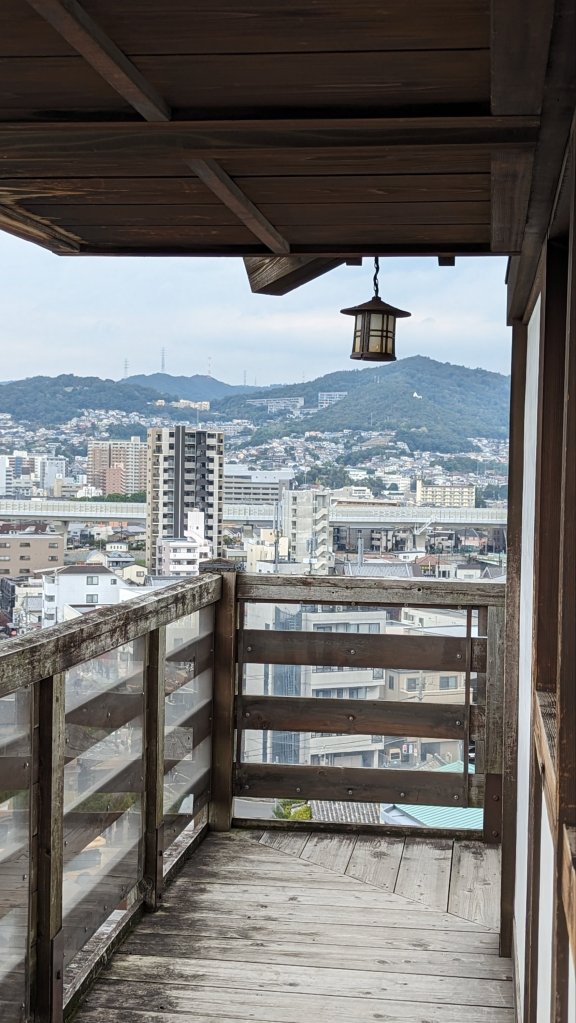 14:00 Uhr: Da es noch nicht angefangen hat mit regnen, haben wir beschlossen noch einen kleinen Abstecher zu einer ehemaligen Burg zu machen. Diese steht zwar nicht mehr, dafür findet man an deren Stelle einen schönen kleinen japanischen Garten samt Aussichtsturm in Form einer Mini-Burg.