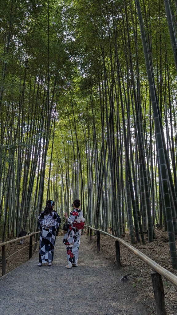Jetzt sind wir im wohl bekanntesten Bambushain von Kyoto, oder besser gesagt, der Beliebteste. Die Menschenmassen sind wirklich bedrückend. Die meisten versuchen ein Foto zu schießen, und zwar so als ob es aussieht, dass man hier alleine wäre. Ein hoffnungsloses Unterfangen 😂