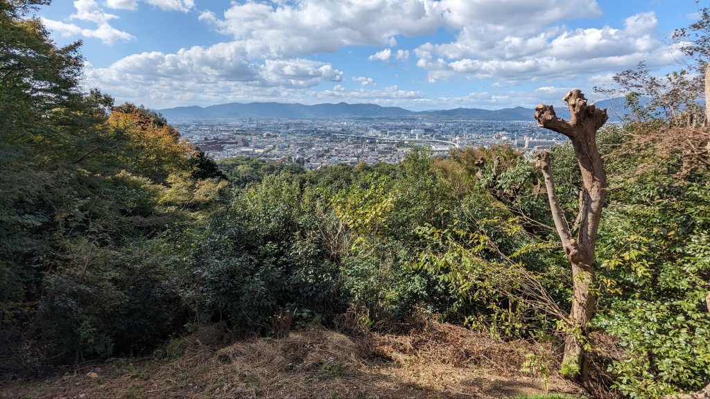 Ich finde in der Nähe einen Park mit einem Aussichtspunkt. Das ist unser nächstes Ziel. Angekommen treffen wir kaum Menschen. Dafür haben wir eine tolle Aussicht auf den Ostteil von Kyoto.