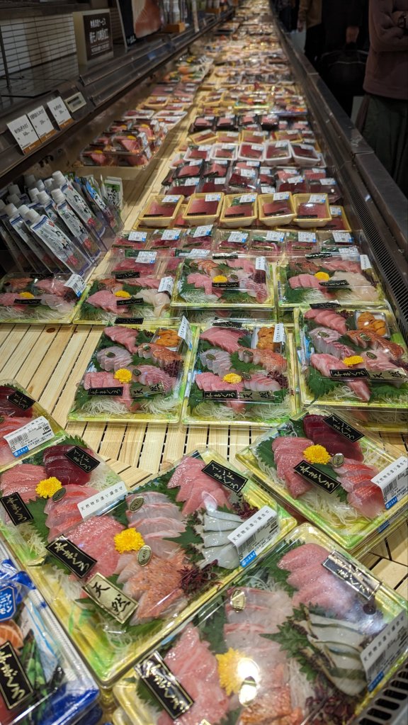 Wir kommen durch eine Foodhall. Das Angebot ist gigantisch. Mit jedem neuen Foto bekommen wir mehr Hunger. Wir müssen hier raus. Ansonsten wird das heute nichts mit Omurice.
