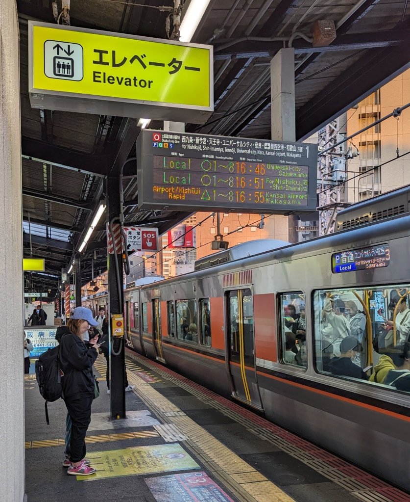 16:00 Uhr: Es ist Zeit aufzubrechen. Zurück zum Hotel und danach zum Flughafen. Wir kämpfen uns durch das Wirrwarr an Gängen an der Namba Station. Immer wieder müssen wir auf Schilder genau achten. Mit welcher Linie fahren wir nochmal?