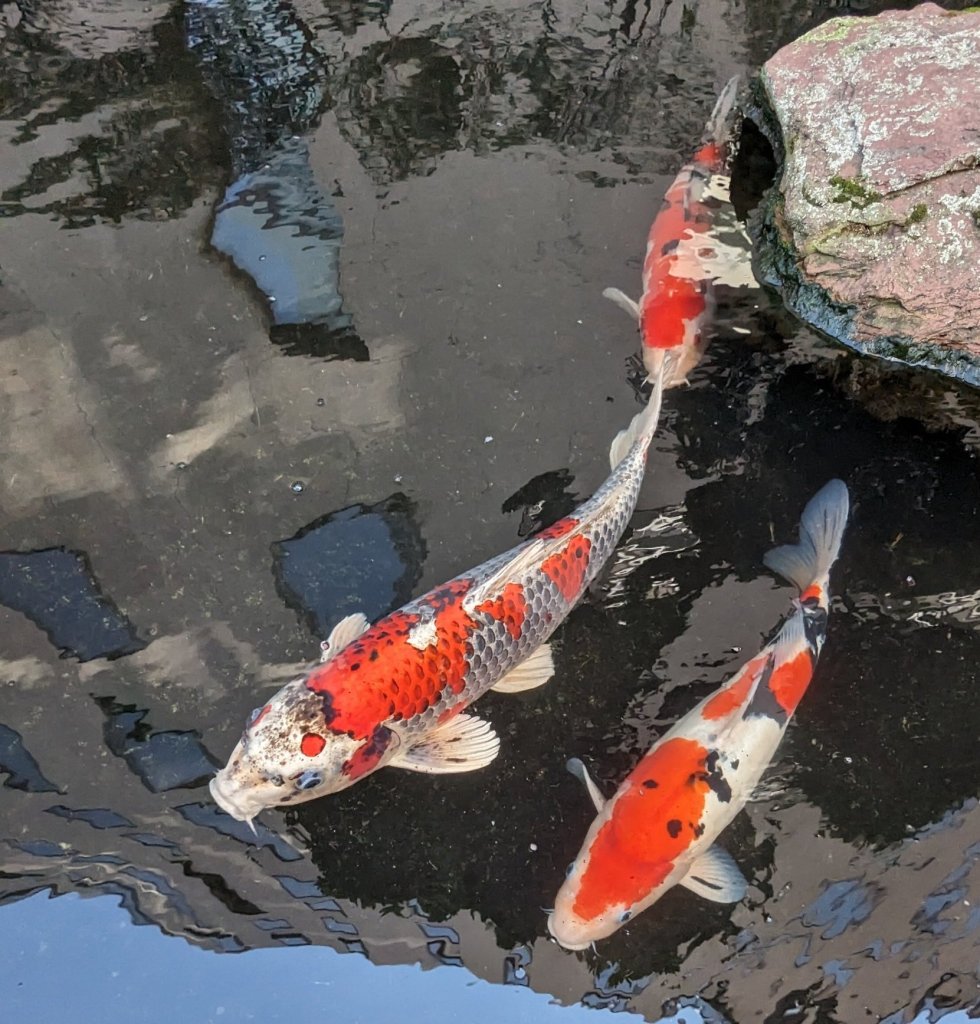 Weiter geht’s in Richtung Store. Oh mein Gott, was ist das? Vor einem Bürohaus entdecken wir einen kleinen Teich mit Koi’s. Wir können her problemlos ins Wasser greifen. Unvorstellbar, denke ich mir, dass es so etwas in Deutschland mitten in einer Großstadt geben würde. Oder?