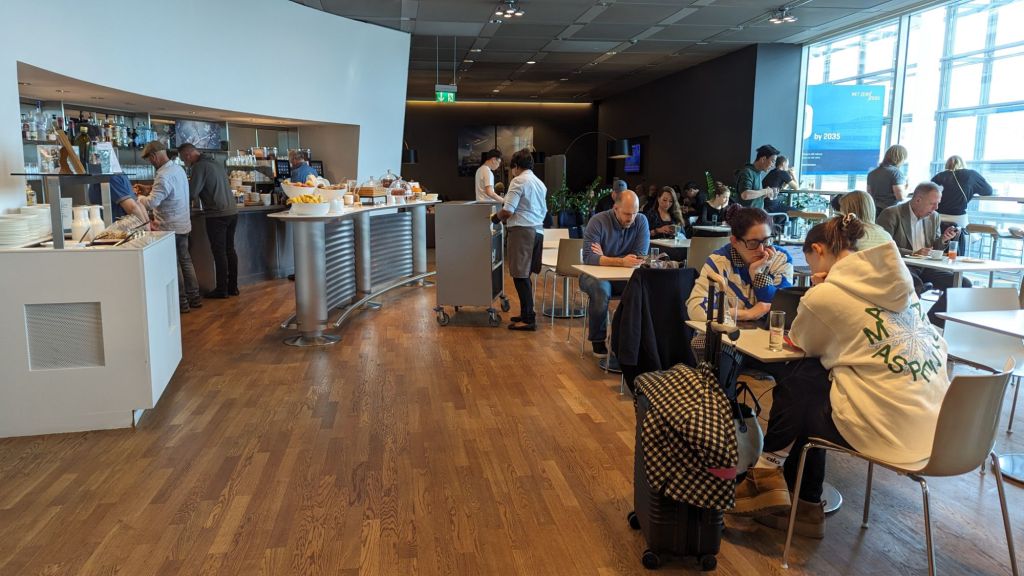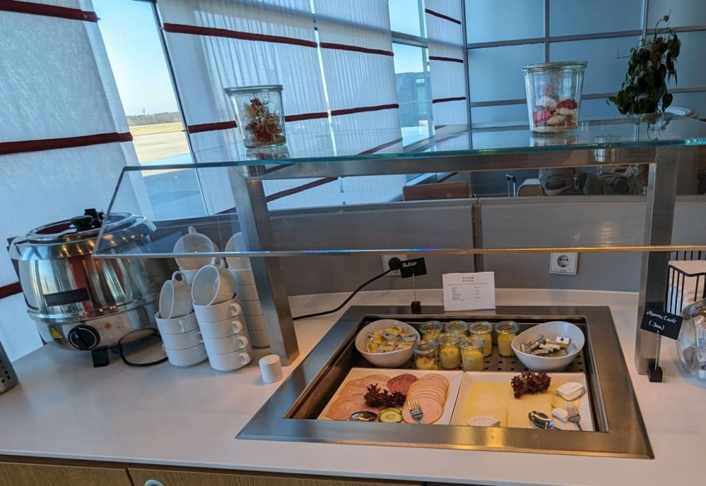 07:45 Uhr: Noch eine Stunde bis zum Boarding. Wir machen es uns gemütlich in der Business Lounge. Aktuell ist hier gar nichts los. Das Essensangebot ist überschaubar, aber auch kein Wunder bei den wenigen Flügen, die hier täglich von Dresden aus starten.