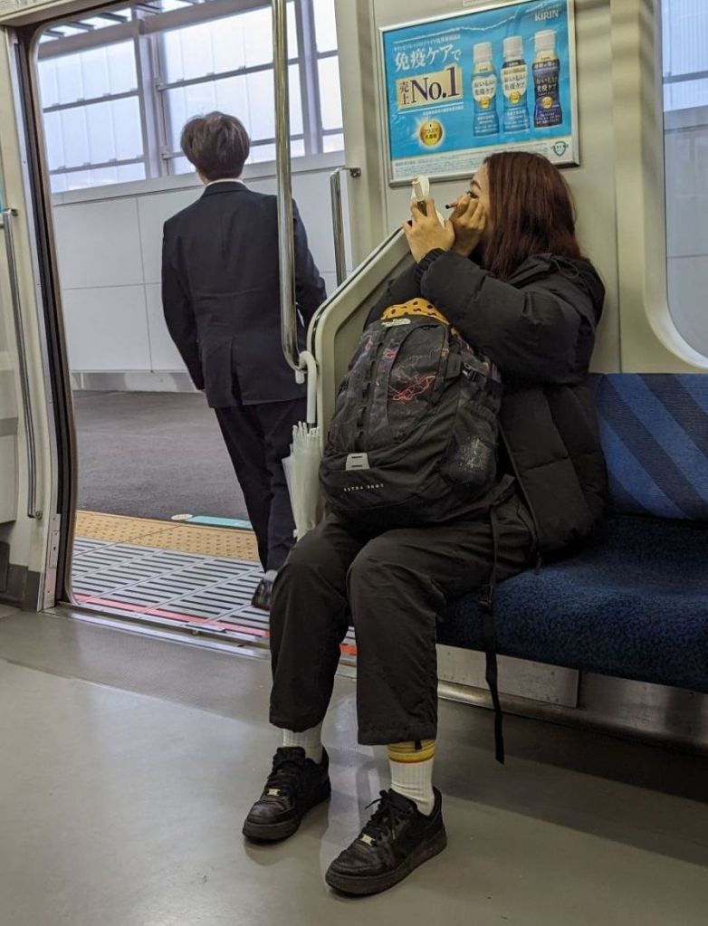 In den Zügen im Nahverkehr ist es immer so schön ruhig. Sehr entspannend, damit zu fahren. Es gab im Übrigen mal eine Umfrage unter Japanern, was sie am meisten im Nahverkehr stört. Einer der Punkte war, laut sprechen. Ob damit vor allem Touristen gemeint sind?