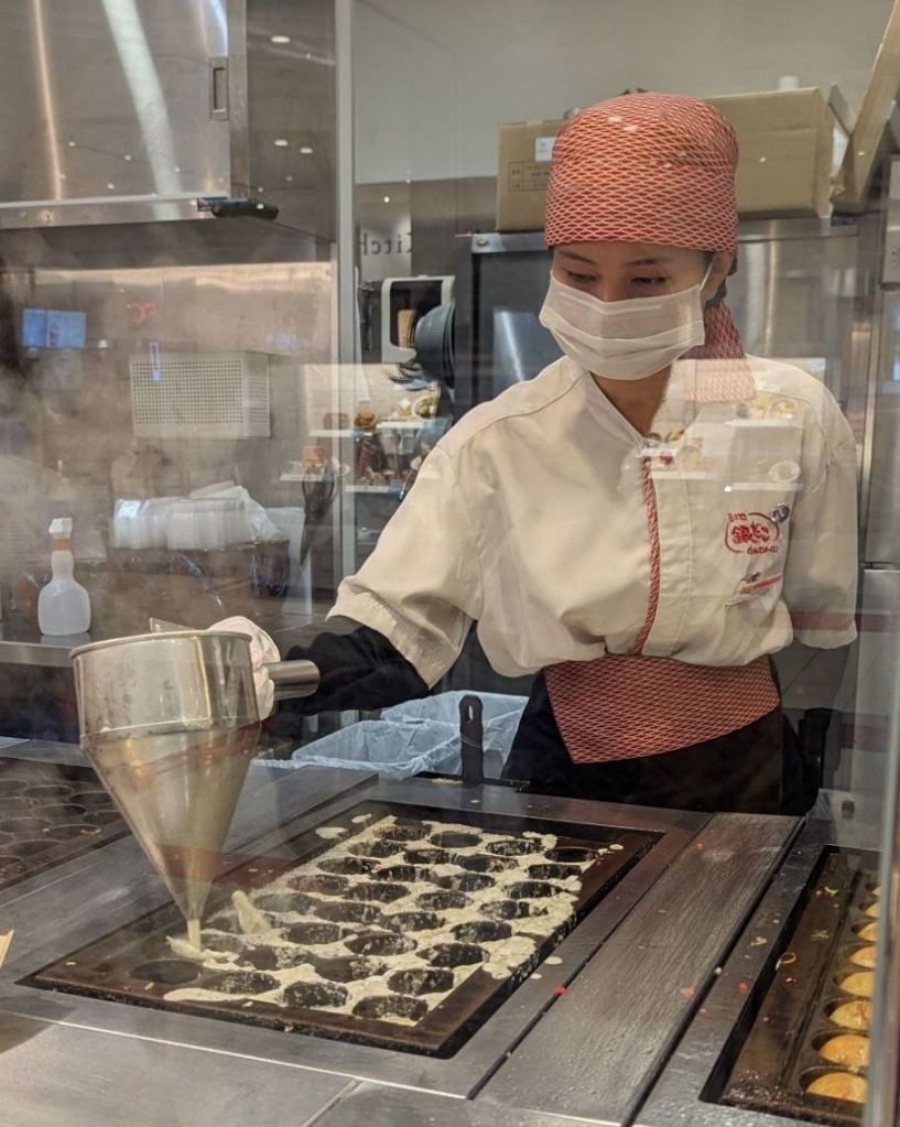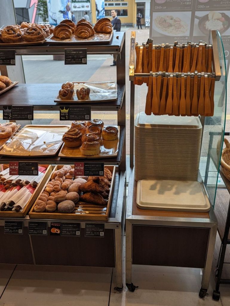 Wir gönnen uns erst einmal einen 10 Yen Taler. Diese habe ich letztes Jahr erstmalig in Osaka ausprobiert. Es ist einfaches Gebäck mit einer Füllung. Wir müssen am Automaten ordern. Das ist aber alles easy und selbst erklärend. Ich entscheide mich diesmal für die herzhafte Käsefüllung. Hmmm, lecker. 😋