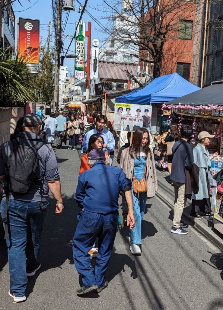 Sakura, oder die Kirschblüte, ist für die meisten Japaner eine wichtige Jahreszeit. Da herrscht vielerorts schon fast ein Ausnahmezustand. Allerdings blühen aktuell die Kirschblüte bis jetzt nicht so, wie wir es erwartet haben. Wenn alles in voller Blüte steht, würde dies, was wir hier gerade sehen, jeden Tag stattfinden.