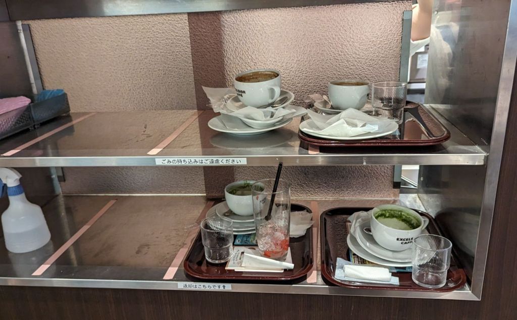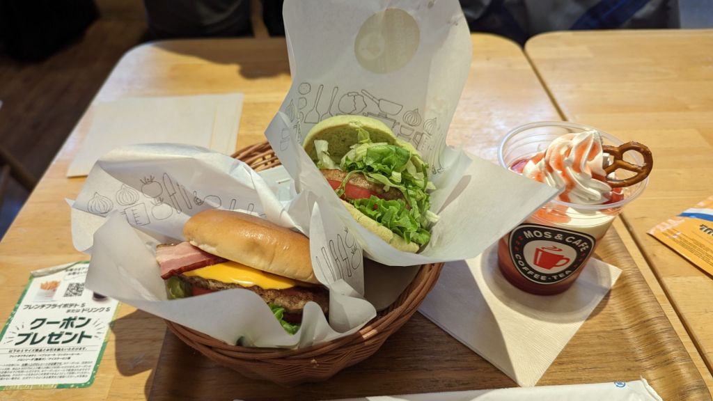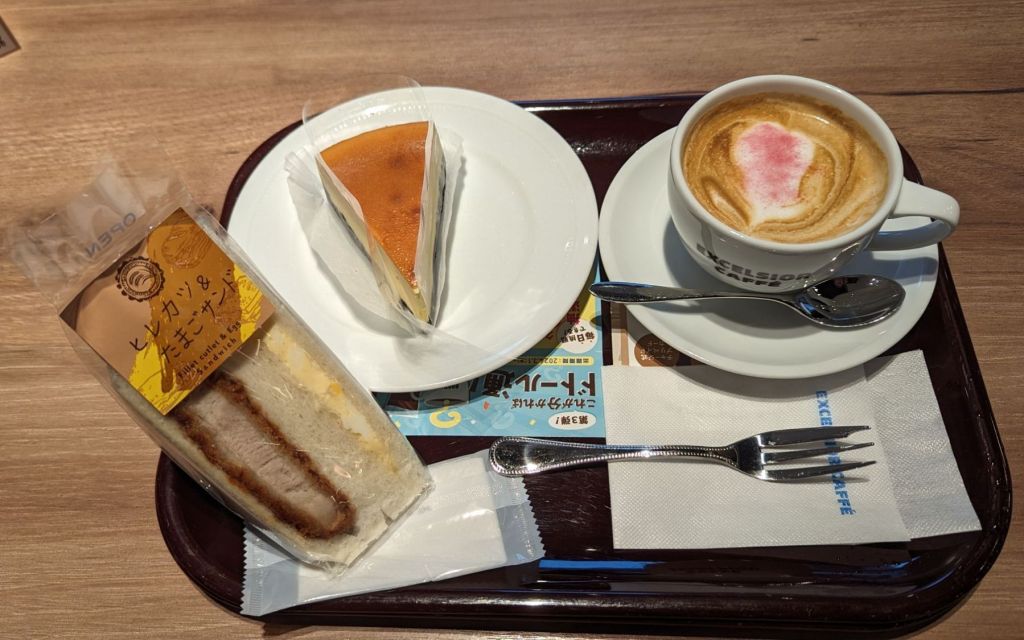 Jetzt gehen wir erst einmal in ein Café etwas trinken und essen, den Schock verdauen. Aha, hier steht alles auf Japanisch. Cool, und ich verstehe, was da steht. Level up 😁