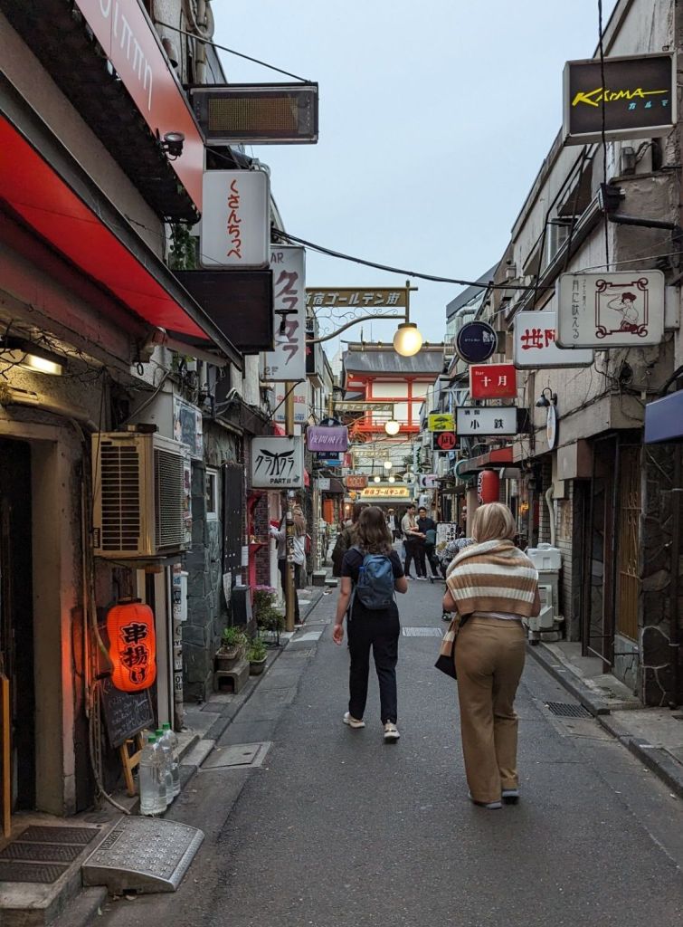 Wir gehen noch mal in das Bar-Viertel von Shinjuku, das Golden Gai. Hier gibt es jede Menge kleine Bars mit zum Teil nur fünf Sitzplätzen. Wenn man Alkohol trinken darf, ist dies ein wunderschönes Ausgehviertel, um gemütlich den Abend zu verbringen. Die meisten Bars öffnen aber erst um 19 Uhr.
