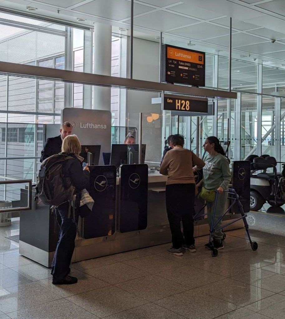 07:15 Uhr: Wir sind am Flughafen angekommen. Wie meistens ist nicht viel los hier. Die Koffer sind schnell abgegeben. Jetzt müssen wir noch ein Handy fertig einrichten, damit wir die eSIM für Japan nutzen können. Geht aber auch alles sehr unkompliziert.