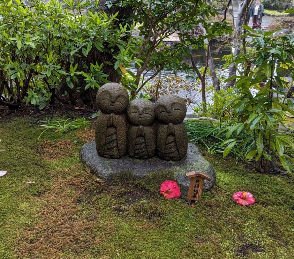 12:00 Uhr: Weiter geht es zum Zojo-ji Tempel. Hier gibt es jede Menge Jizo Statuen, ebenfalls etwas, was es in dieser Form nur in Japan gibt. Die Statuen sind Schutzgottheiten für Kinder, Lebende wie auch ungeborene oder Verstorbene. Viele von ihnen haben zudem eine rote Mütze auf, manche ein Windrad in der Hand. Wenn Wind weht, entsteht dadurch ein schönes Geräusch.