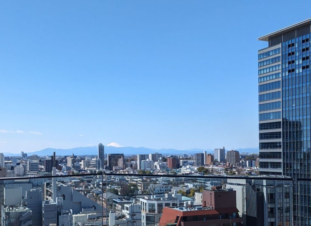 Na schau mal einer an. Da ist er ja, der Mount Fuji. Und sogar eine weiße Haube hat er. Der Ausblick ist aber wirklich der Wahnsinn. Einfach jedes Mal aufs neue super.