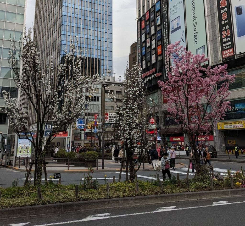 20:00 Uhr: Jetzt müssen wir uns heranhalten. Los geht’s zurück zum Mori JPTower. Oh, da die ersten Kirschbäume in voller Blüte. Wo kommen die denn auf einmal her? Ablenkung pur, und dabei haben wir doch gar keine Zeit. Schnell ein Foto, weiter geht’s.
