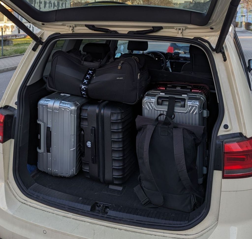 06:45 Uhr: Taxi ist da und die Koffer sind verladen. Von mir ist nur die kleine Reisetasche, die auf den Koffern liegt. Dies muss für die nächsten vier Wochen reichen.