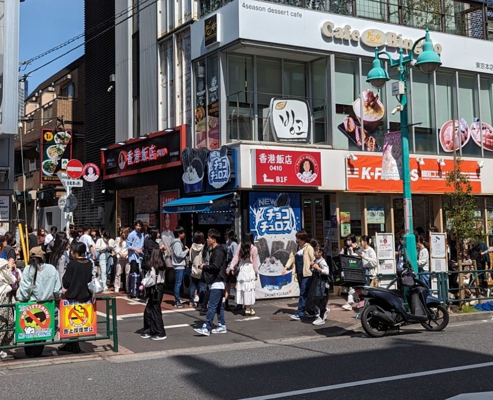 12:30 Uhr: Wir sind in dem Viertel angekommen, welches ich mir genauer ansehen wollte. OMG, hier ist wirklich viel los. Aber vor allem sind hier viele junge Japanerinnen. Ich habe den Eindruck, dies könnte das neue Harajuku werden. Besonders fallen mir die vielen Straßenläden auf, an denen man Süßigkeiten kaufen kann. Witzig, hier gibt es sogar einen reinen Oreo Stand.