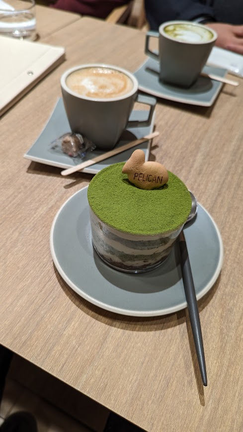 Wir laufen zum Stadteil Ginza. In einem Family Mart hole ich mir ein Matcha-Latte. Kurz auf Google Maps geschaut, wo das nächste Cafe ist. OMG, es gibt wirklich viele hier. Eins ist gleich um die Ecke. Dann mal los. Ah, dieses Cafe sieht aber auch schick aus. Das wurde mir gar nicht angezeigt. Dann mal rein. Hmm, sehr lecker sieht das aus.