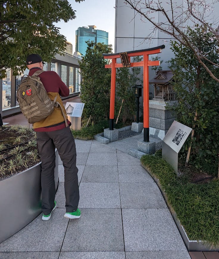 Von dem Garten hat man einen schönen Blick auf Ginza. Aber hier oben gibt es auch noch einen kleinen Schrein. Der ist scheinbar mit nach oben gewandert, als man das Gebäude gebaut hat. So kann man hier in Ruhe ein kleines Gebet sprechen, wofür auch immer.