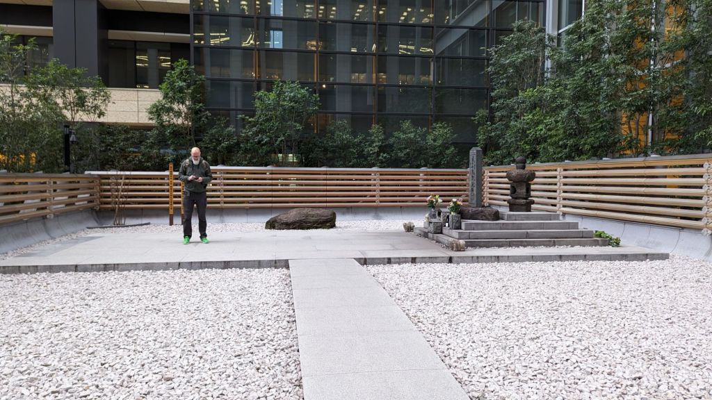 12:30 Uhr: Wir haben noch etwas Zeit, bevor wir das geplante Restaurant aufsuchen. Ich habe mich deswegen dazu entschieden, dass wir uns noch einen japanischen Garten ansehen. Dieser befindet sich in unmittelbarer Nähe, umgeben von Wolkenkratzern.