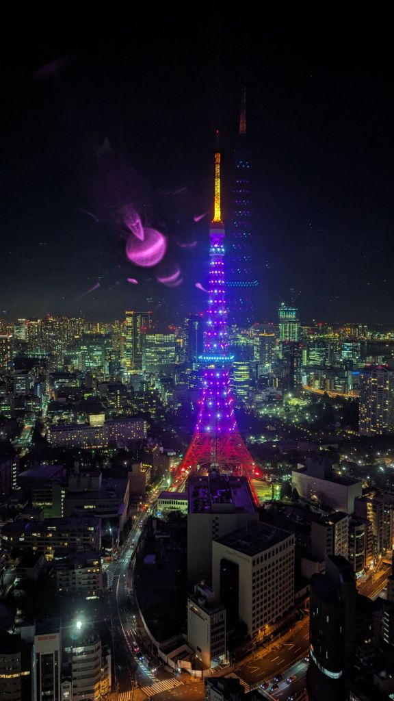 Puh, geschafft. In 15 Minuten schließt die Plattform. Wir fahren schnell nach oben, schießen ein, zwei Fotos von dem hübsch beleuchteten Tokyo Tower. Hat sich gelohnt, dass wir etwas schneller gelaufen sind.