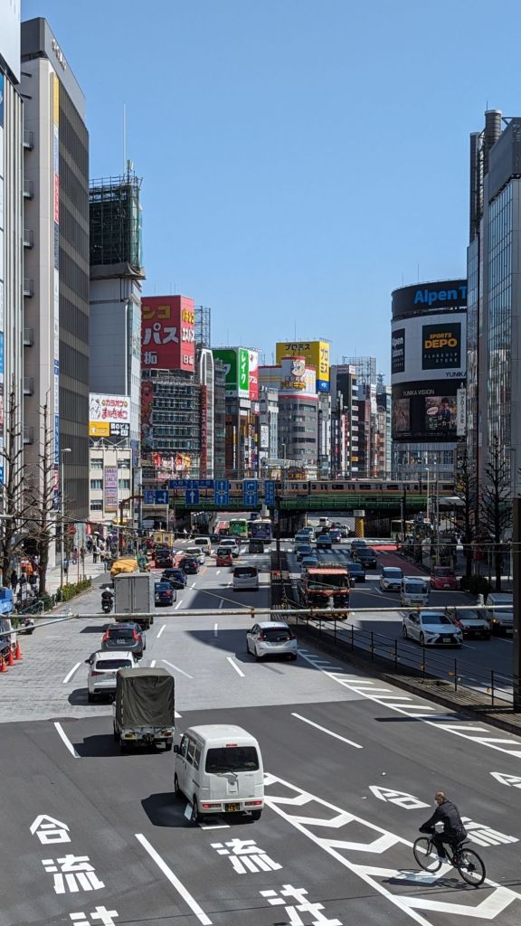 12:00 Uhr: Die anderen Koffer haben wir jetzt auch im zweiten Hotel abgegeben. Jetzt laufen wir erst einmal ein Stückchen durch Akihabara. Irgendwie ging alles schneller als gedacht. Jetzt muss ich mir noch etwas überlegen, was wir machen, ohne uns zu weit vom Hotel zu entfernen.
