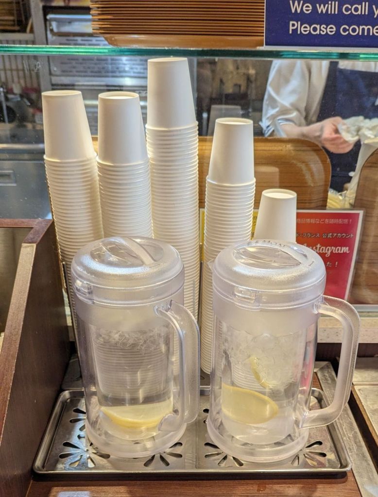 In jedem Café, Restaurant und Bistro gibt es auch immer kostenfrei Wasser. Manchmal kann man auch kostenfrei Tee trinken oder wie hier in diesem Café hat man die Auswahl zwischen zwei verschiedenen Geschmacksrichtungen des Wassers.