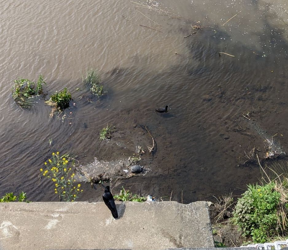 Ich laufe gerade an einem Fluss entlang. Ich bin echt überrascht, in dem Fluss schwimmen Koi-Karpfen und ich sehe hier sogar Schildkröten. Hier gibts einfach mal Schildkröten im Fluss! Ob die irgendwo mal ausgebüxt sind?