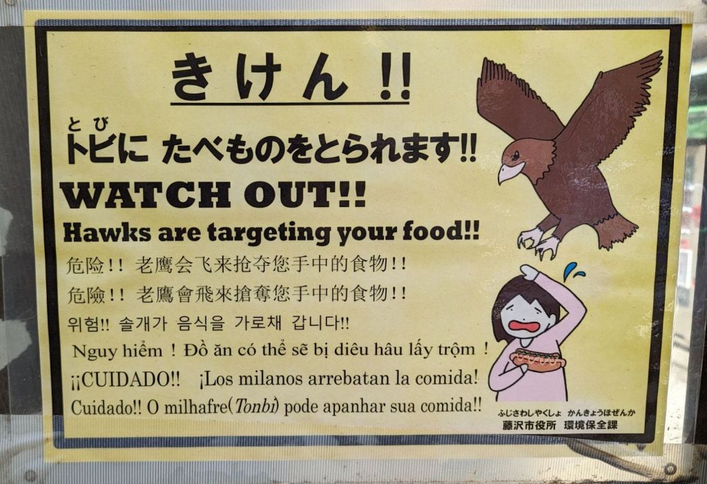 Was ebenfalls interessant ist, sind diese Hinweisschilder. Sie findet man an jedem Essensstand, also wo man sich etwas zu Essen auf die Hand mitnehmen kann. Scheint ein echtes Problem zu sein.