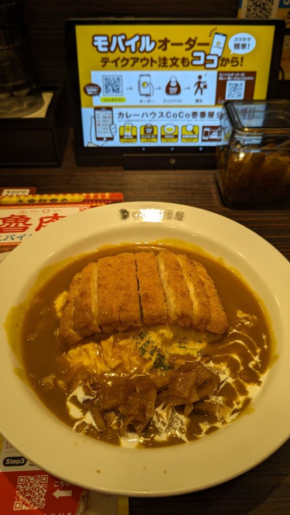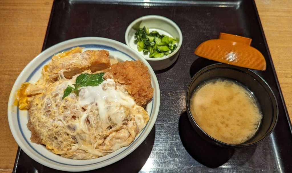 18:00 Uhr: Ich will jetzt erst einmal eine Kleinigkeit essen. Ich habe gerade eine unterirdische Passage entdeckt, die scheinbar zu meinem Hotel führt. Dort habe ich heute einen Laden gesehen, bei dem es Katsu Don gibt. Der Laden ist nur sehr klein und eigentlich ein Geschäft, bei dem man Essen kauft, was man mit nach Hause nimmt. Sie haben aber eine Nische mit vier Sitzplätzen. Und ich habe Glück, es ist alles frei. Itadakimasu (Guten Appetit).