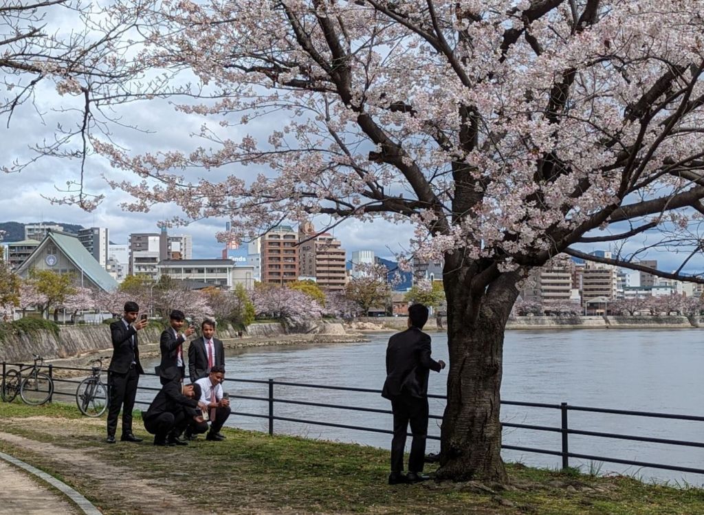 Das muss man erst einmal schaffen, was ich dieses Jahr geschafft habe. Gefühlt habe ich nämlich von der Kirschblüte nicht viel mitbekommen. Die ersten 2 Wochen waren sie noch nicht aufgegangen. In Hiroshima habe ich dann ein paar gesehen. In Nagasaki war es schon wieder vorbei. Und als ich nach Nagoya kam, dasselbe Spiel. Die Hauptblüte war durch. Super, und hier sieht es genauso aus.