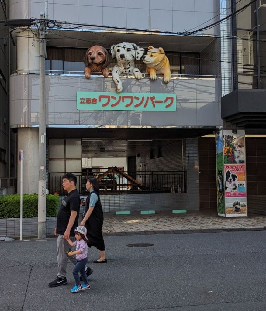 Und da fällt mir noch eine andere witzige Sache auf, an der ich gerade vorbeilaufe. Auch diese habe ich bereits in Tokio und Yokohama gesehen. Friseursalons für Hunde. Dieser Hund hier scheint es richtig zu genießen, denn er regt sich förmlich nach der Friseurin, um sich von ihr schicken zu lassen. Sieht schon witzig aus.