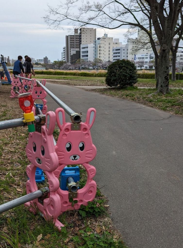Feiern die Japaner eigentlich Ostern? Natürlich nicht, da dies ein christliches und kein buddhistisches Fest ist. Trotzdem sind mir hier Osterhasen aufgefallen. Wie diese z.b hier, die als Absperrung für Baustellen dienen. Die gibt es natürlich auch noch mit anderen Figuren.