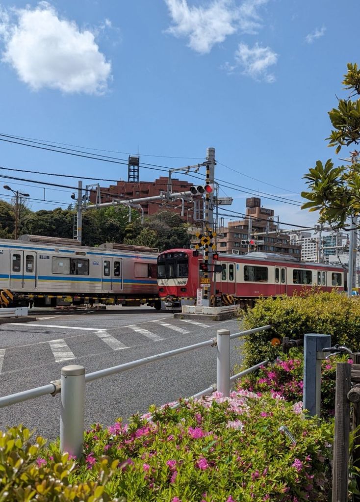 Die Wege sind hier ganz schön übereinander gestapelt. Ich muss mich erst mal orientieren. Oh, eine Schranke. Auch das findet man immer mal wieder in Tokio. Dies hier ist im Übrigen eine Hauptstrecke. Das bedeutet, die Schranken gehen dauerhaft auf und zu.