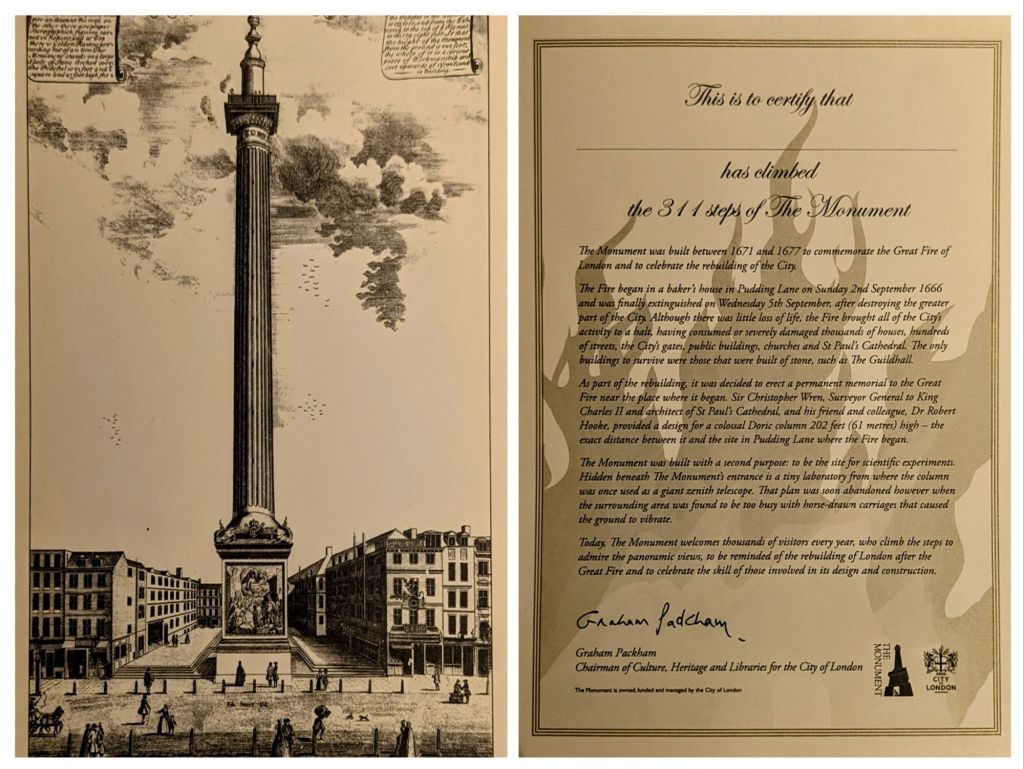 Oben spricht mich jemand an und er erzählt mir etwas von Bombenanschlägen, die es 1992 hier in London gab. Dabei wurden ein paar Gebäude hier in der Umgebung zerstört. Er zeigt mir diese. Danach geht’s für mich hinab. Ich frage mich, wie viele Stufen dies überhaupt sind? Am Ausgang erhalte ich ein Zertifikat und die Antwort auf meine Frage.