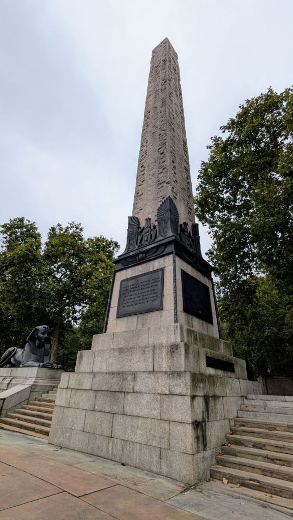 - 1819 von Muhammad Ali Pascha an Großbritannien geschenkt, aber erst 1877 in London angekommen, aufgrund der Schwierigkeit des Transports