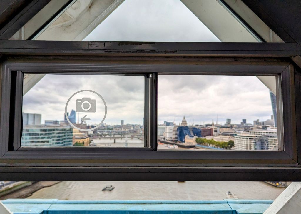 Das ist ja wirklich lustig und eine gute Idee. Ich habe gerade diese kleinen Schiebefenster gesehen. Diese kann man öffnen, sodass man Fotos von der Brücke schießen kann, ohne durch die Scheibe fotografieren zu müssen und damit Reflexionen auf dem Foto zu riskieren. So etwas würde ich mir auch bei anderen Aussichtsplattformen wünschen.